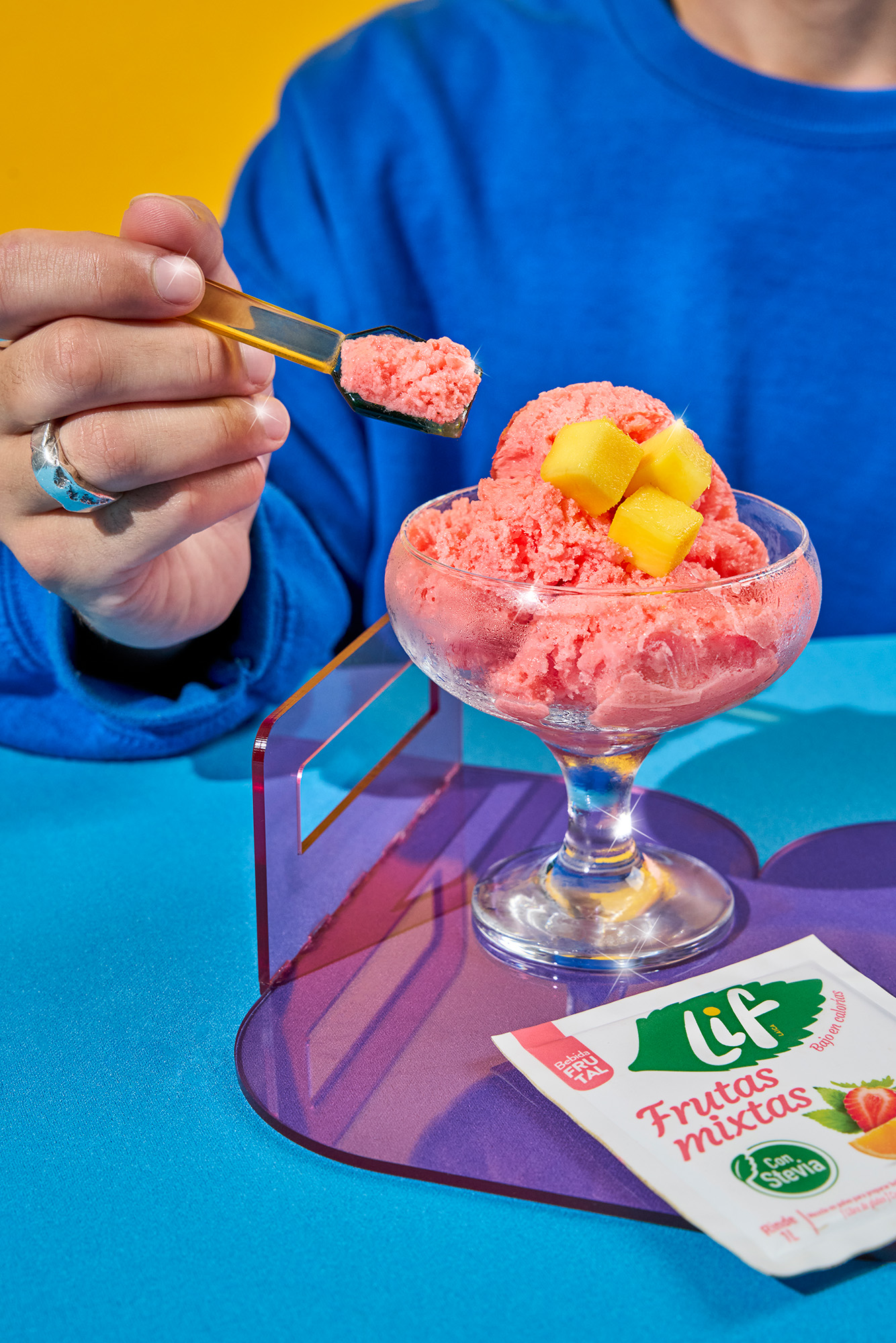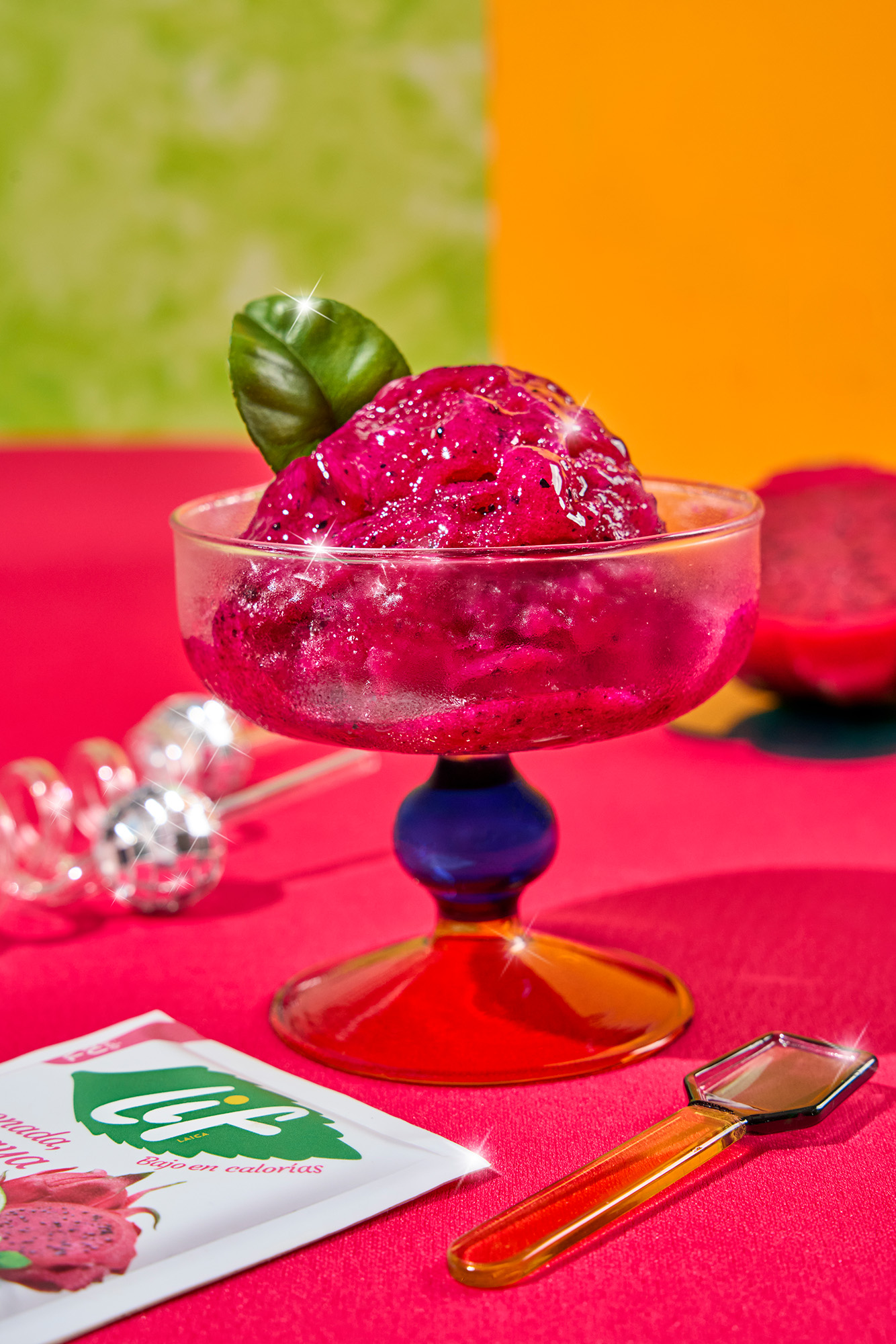 Gelatina frozen de limonada de pitahaya y fruta fresca